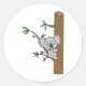 Adesivo Redondo Cute Baby Koala Subindo Uma Árvore Eucalyptus