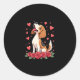 Adesivo Redondo Cute Beagle with Red Roses Hearts Floral Valentine