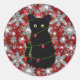 Adesivo Redondo Cute black cat Meowy Christmas sparkling snowflake
