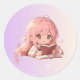 Adesivo Redondo Cute Cartoon Girl Writing on a Book .