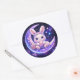 Ideal for decorating laptops, water bottles, journals, phone cases, and more, this high-quality round sticker is perfect for those who love cute animals, moon aesthetics, and galaxy-inspired designs. The combination of soft details and celestial style creates a unique and eye-catching look.