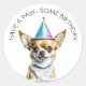 Adesivo Redondo Cute Chihuahua no Chapéu de Aniversário