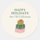 This festive design features a stack of hand-drawn holiday gifts in soft green, pink, and gold tones paired with warm seasonal lettering. It’s perfect for sealing cards, packaging homemade treats, or adding a personal touch to holiday gifts. The cozy color palette works beautifully for classic or modern Christmas styles. Customize the text to match your family name, event, or gifting traditions.