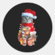 Adesivo Redondo Cute Christmas Tabby Cat In Lights Santa Hat For K