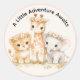 Adesivo Redondo Cute Girl Safari Animals Lion Giraffe Elephant