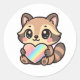 Adesivo Redondo Cute Happy Kawaii Raccoon with Rainbow Heart