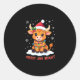 Adesivo Redondo Cute Highland Baby Cow Christmas Lights Merry & Br