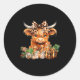 Adesivo Redondo Cute Highland Cow Christmas Santa Highland Cow Lov