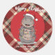 Adesivo Redondo Cute Hippo Christmas tree zoo safari Xmas plaid pa