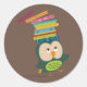 Adesivo Redondo Cute little book owl