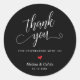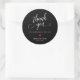Modern Wedding Minimalist Thank You Gifts Classic favor Round Sticker, in classy script, cute little red heart, with bride and groom name and wedding date, in black and white theme.