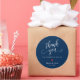 Modern Wedding Minimalist Thank You Gifts Classic favor Round Sticker, in classy script, cute little red heart, with bride and groom name and wedding date, in navy blue theme.