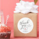 Modern Wedding Minimal Thank You Gifts Classic favor Round Sticker, in creative classy script, cute little heart, with bride and groom name and wedding date, black and white theme.