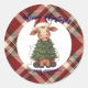 Adesivo Redondo Cute merry Cow Christmas tree calf ox Xmas plaid