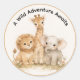 Adesivo Redondo Cute Neutral Safari Animals Lion Giraffe Elephant