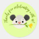 Featuring a cute opossum face holding a flower and the friendly phrase “Thanks for celebrating with us”, it’s perfect for sealing favor bags, decorating envelopes, or adding to party favors.