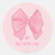 Adesivo Redondo Cute Pink Bow Girl's Monogram and Name