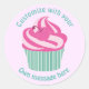 Adesivo Redondo Cute Pink Cupcake Pastel Pink Custom Text