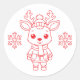 This cute Christmas reindeer cartoon brings a simple and clean design to your gifts and seasonal projects. The red line art stands out beautifully on the white round shape, making this 3-inch sticker an easy way to add a fun holiday touch to packages, envelopes, treat bags, or craft ideas.