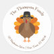 Add a festive touch to your holiday mail with this cute Thanksgiving turkey round return address sticker! Perfect for sealing Thanksgiving cards and invitations. This adorable design features a cheerful turkey and warm fall colors. Easily personalize with your name and address for a charming seasonal detail that makes every envelope special-great for family gatherings or Friendsgiving celebrations.