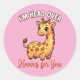 Adesivo Redondo Cute Valentine Giraffe – Head Over Hooves for You