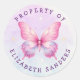 Adesivo Redondo Cute Watercolor PInk Butterfly