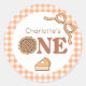Make your baby's 1st birthday party unforgettable with this adorable "Cutie Pie" pumpkin themed sticker. This cutie pie is one, it’s time for a fun first birthday celebration! You can change the color on all text and clipart in this design. Perfect for an autumn, pumpkin, or Thanksgiving theme. Features a peach orange gingham plaid color palette. You can personalize this design by clicking on "Personalize this template" or if you wish to change the font, colors or arrange the design elements in a different way you can click on "Edit using Design Tool".