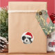 Espalhe alegria natalina e celebre a época festiva com este adesivo redondo de estimação adorável, apresentando um cachorrinho Bichon Havanais preto e branco usando um chapéu de Papai Noel vermelho sobre um fundo branco. É uma maneira fácil de alegrar os envelopes dos seus cartões de Natal, mas também um belo toque