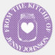 Da cozinha de vintage mason jar adesivos com bolinhas roxas. O partido personalizado favorece nomes de etiqueta com mensagem personalizada. Elegante design de polkadots com símbolo cardíaco de amor em boião rústico. modelo de tipografia na moda. Adicione seu próprio nome e / ou sobrenome da família. Rótulos "DY", de cor branca e cônica, ou selos, para produtos de cozinhar feitos em casa e produtos de panificação, como biscoitos, doces, bolo, cupcakes, guloseimas de Natal, etc.