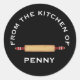 "Da Cozinha de" etiquetas de nome personalizadas. Design minimalista com fundo preto, pino rolante e tipografia branca em negrito. Todos os Direitos Reservados © 2021 Alan & Marcia Socolik.