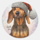Adesivo Redondo Dachshund, Cachorro Papai noel, Personalizar, Nata