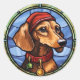 Adesivo Redondo Dachshund Stainha Glass Christmas