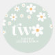 Dois! Os adesivos da festa de segundo aniversário inspirados retroativamente com margaridas de estilo 70 e fontes e cores de vaivém.
