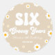Esta é uma Flor Marrom Retro Daisy Seis Anos de Groovy Festa de aniversário Favor Stickers.