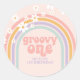Adesivo Redondo Daisy Groovy One Pastel arco-íris primeiro anivers