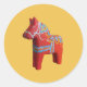 Esta design é de um cavalo de madeira talhado e pintado por Julia Morrill