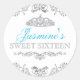 Adesivo Redondo Damasco branco prateado e Tiara Sweet 16 Sticker