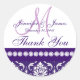 Adesivo Redondo Damasco Branco Roxo Obrigado Favor De Casamento