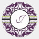 Adesivo Redondo Damasco Roxo - Letra inicial J Casamento