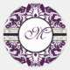 Adesivo Redondo Damasco Roxo - Sticker Inicial - Letra M Casamento