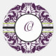 Adesivo Redondo Damasco Roxo - Sticker Inicial - Letra O Casamento
