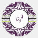 Adesivo Redondo Damasco Roxo - Vinheta inicial - Letra I Casamento