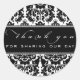 Obrigado, colante em um fundo preto e branco clássico de damasco.