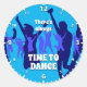 Na moda colorido TIME TO DANCE Round Sticker, mostrando gráficos de silhuetas dançantes. O esquema de cores é azul escuro, azul ciano, mauve e branco. O texto diz que há sempre tempo para dançar em tipografia branca. O texto é PERSONALIZÁVEL para que você possa substituí-lo por texto ou nome de tamanho semelhante. Disponível em outras cores.