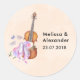 Vestidos de casamento com a noiva e o nome do noivo e a data de casamento com uma design feminina. Ilustrada com uma imagem de aquarela de um violino de madeira, alguns balés cor-de-rosa descansando contra ele e decorados com flores e borboletas. Colocado sobre um fundo cor-de-rosa cor de pêssego. Personalize com os nomes da noiva e do noivo e a data do casamento.