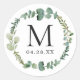 Adesivo Redondo Data de Casamento do Monograma Eucalyptus deixa a