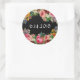 Adesivo Redondo Data de Casamento Rosas Borgonhetas Azuis