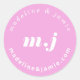 Nome personalizado, monograma e adesivos do site de casamento, estilo retrógrado cor-de-rosa moderno e mínimo ousado. O design apresenta um design de texto de arco com o monograma do casal exibido em letras grandes e negrito.