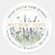 Abelhas de mel com flores silvestres locais — como camomila, lavanda, margarida, girassol, renda da Rainha Anne — envoltas em um simples quadro circular de ouro. Nome próprio exibido no centro do rótulo em uma fonte de script casual.