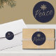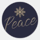 Adicione um toque de elegância às suas correspondências e encomendas de Natal com este lindo adesivo redondo. O fundo azul-marinho profundo é adornado com um floco de neve em dourado escovado no topo, simbolizando a beleza serena da época. Abaixo dele, a palavra "Paz" é delicadamente escrita em uma fonte suave, capturando o espírito de tranquilidade e boa vontade. Perfeitos para adicionar um toque carinhoso aos seus cumprimentos festivos, esses adesivos são uma maneira encantadora de espalhar alegria e calor nesta época de Natal. Use-os para selar envelopes, decorar embrulhos de presentes ou adornar brindes de Natal. Eleve a apresentação das suas festas de fim de ano com este design cativante e significativo.